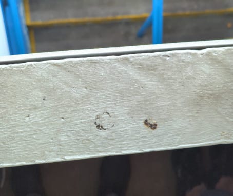 Nicely painted? That bird shit is still there this season, pulling focus from the West Stand asbestos. You can’t fool me.